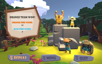 The game only ends when the timer runs out or if one of the team let's their fire go out. Whoever has the most points by the end wins!